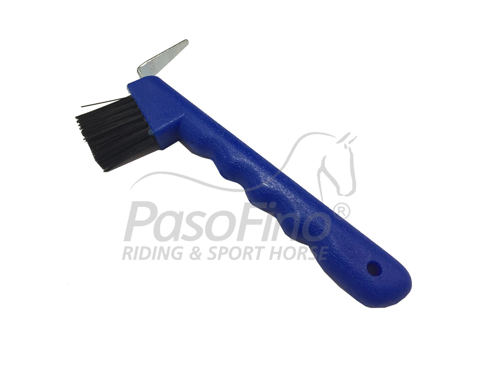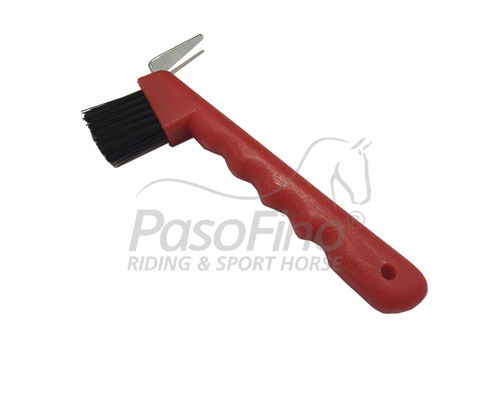 It has two parts, side a small brush that is used to clean the hoof and especially the frog. On the other, a curved metal that helps to remove remains of mud, and stones that could have been embedded in the hulls.