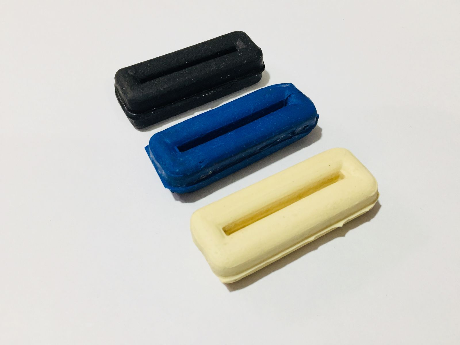 Mantiene fijo el bajador una vez regulado. Fabricado en goma flexible de primera calidad. Disponible en colores Azul, Negro y Blanco.